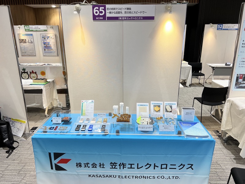 弊社ブースでは、樹脂加工部品や金属加工部品を展示しております。